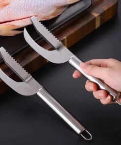 - Double-Row Serrations: Serrated design for easy scraping of fish scales without damaging the flesh. Double rows of serrated teeth, so that small and large fish scales have nowhere to hide.