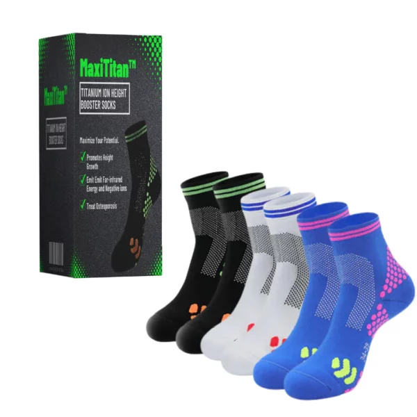 - 1 x MaxiTitan™ Titanium Ion Height Booster Socks (1 Pair)