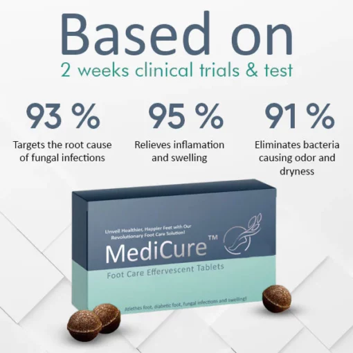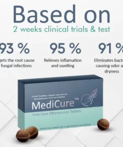 Are you tired of dealing with fungal infections, foot scarring, athlete’s foot, and diabetic foot complications? Say goodbye to discomfort and hello to healthy, rejuvenated feet with MediCure™ Foot Care Effervescent Tablets. Our advanced foot soak formula is designed to provide you with the ultimate treatment, offering relief and promoting the overall well-being of your precious feet!