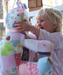 Can also be made from a child’s clothing to preserve their childhood memories. *Hand made using a huggable patterns templates.