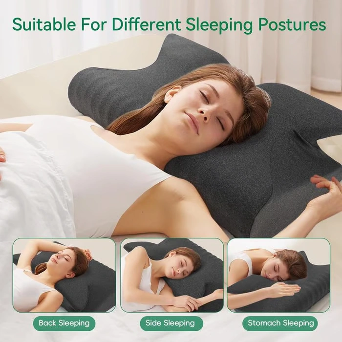 The ergonomic design of the Memory Foam Soft Neck Pillow makes it suitable for a variety of sleeping positions. Whether you sleep on your back, side, or stomach, this pillow provides the right support for your neck and head, promoting a comfortable and pain-free sleep. It ensures that your body remains in an optimal position throughout the night.