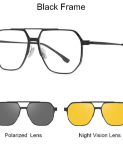 This eyewear comes with a magnetic adsorption clip lens that can be easily attached or detached from the frame. The polarizers lens helps to reduce glare and improve visual clarity, making it ideal for outdoor activities like driving, hiking, and fishing. Additionally, the night vision lens is designed to enhance visibility in low-light conditions, making it easier to see when driving at night or in other low-light situations.