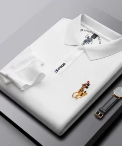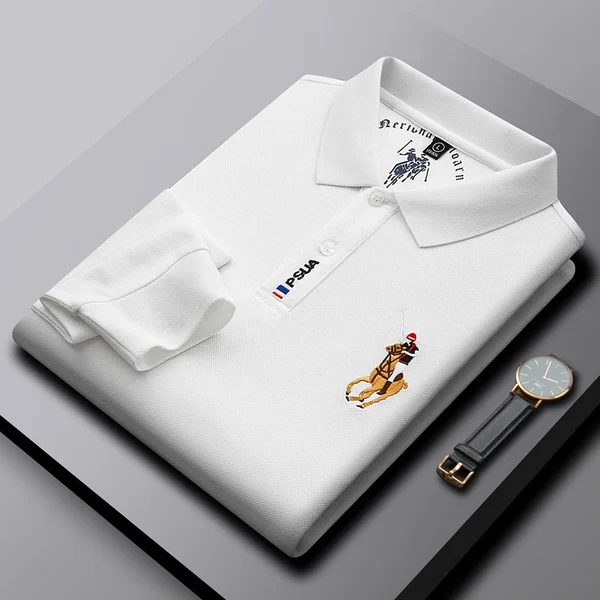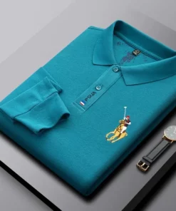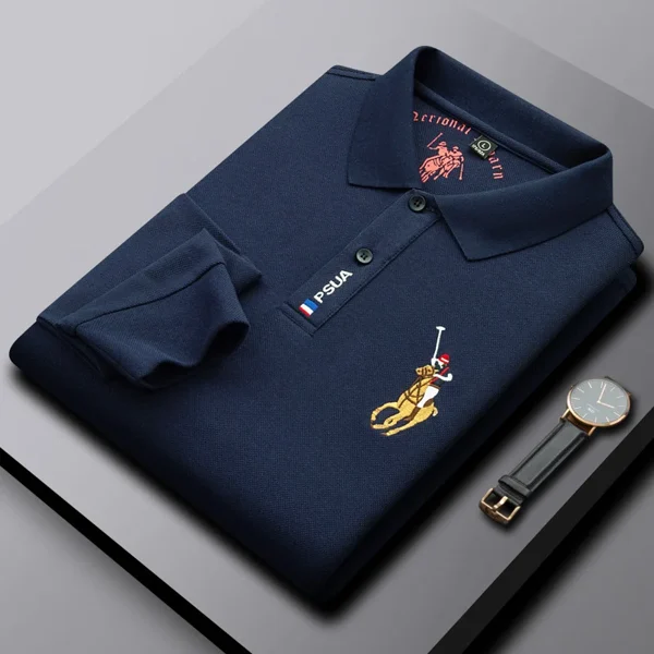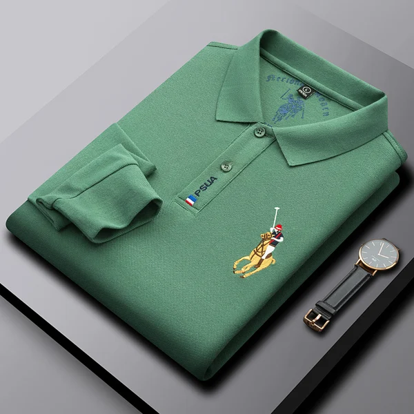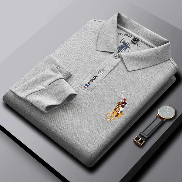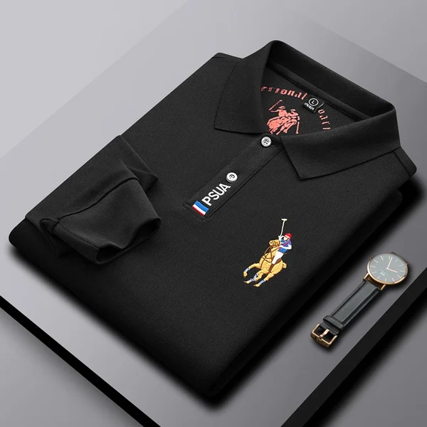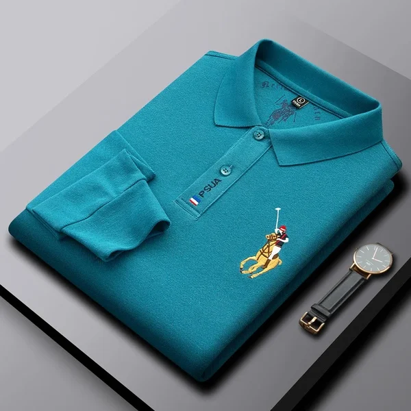 Mens Business Casual Embroidered Lapel Long Sleeve Polo Shirt