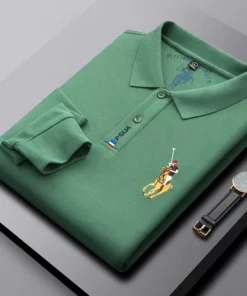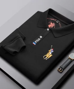 Men’s Business Casual Embroidered Lapel Long Sleeve Polo Shirt