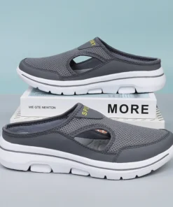 Men’s mesh toe half slippers are a type of footwear designed for casual wear. They typically have a breathable mesh upper that allows for ventilation and helps keep feet cool and dry. The toe of the slipper is exposed, providing a comfortable and convenient way to slide them on and off. The half design refers to the fact that the slipper does not cover the entire foot, leaving the heel exposed. These slippers may also have a flexible and durable sole for added comfort and support.