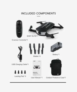 - Package Includes: 1 x Mini Baby Selfie Drone (.7 V 400 mAh battery; 1 x Remote Control; 1 x USB charger; 4 x Propeller; 1 x Outdoor package; 1 x User Manual; 4 x Landing Pad)
