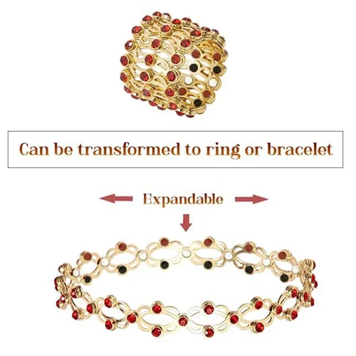 This is an ornament that can be turned into a ring from the bracelet. He can stretch to bracelet. When folded back, he is a very beautiful ring.
