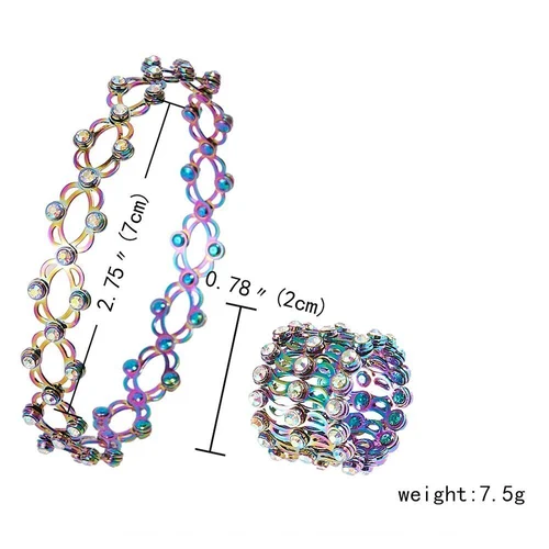 The ring is retractable. Just stretch and compress, the shape of the bracelet and ring will changed. So don’t worry about the size, you can adjustable suitable sizes according to your own ring size or bracelet size.