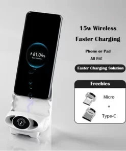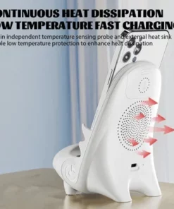 Unique and novel, the wireless charging/mobile phone holder function can be placed horizontally or vertically, and there is a sound hole at the bottom to make the sound more three-dimensional when the phone is playing.