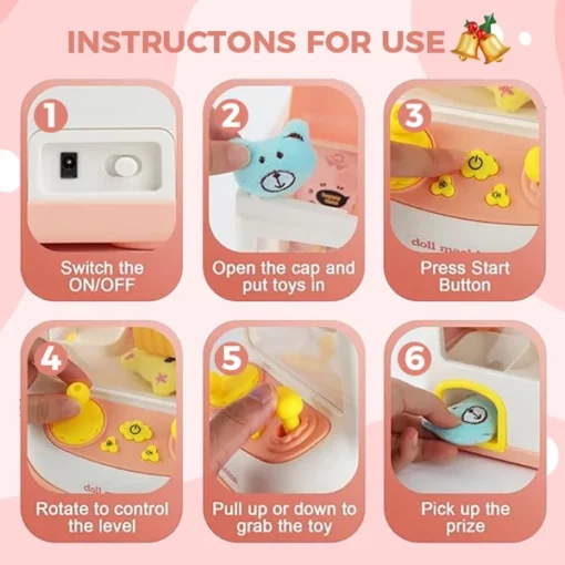 🎪 User-Friendly Design: Simply switch it to the “ON” position, press “Start,” and then use the joystick to maneuver the claw to grab the prize you desire. The claw is flexible and strong, capable of a 360-degree rotation for easy prize selection.