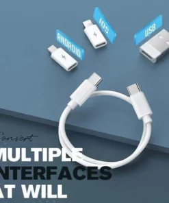 [Multifunctional] Interchangeable charging and transmission cable. It has four different ports: Android, lightning, USB, and a TYPE C cable that you can convert it into the type of port you need for data transmission, charging, etc.