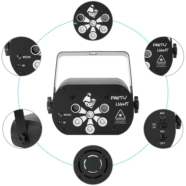Get ready to immerse yourself in a world of captivating visuals and pulsating rhythms. Introduction the Portable NightClub  boast an exclusive design with a total of 60 combinations patterns, 7 colors LED background lenses, offering an expansive panoramic flash coverage that promises to agitate your party experience like never before.