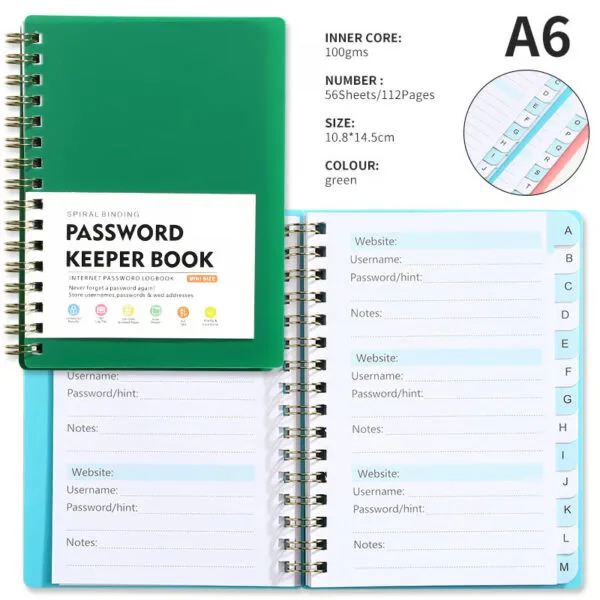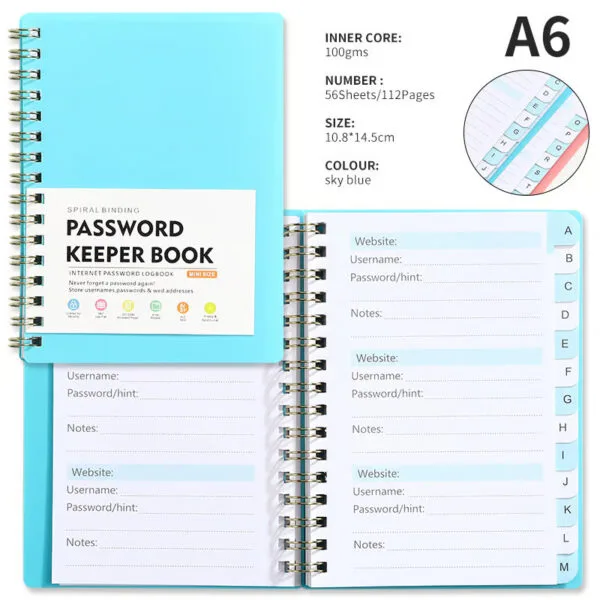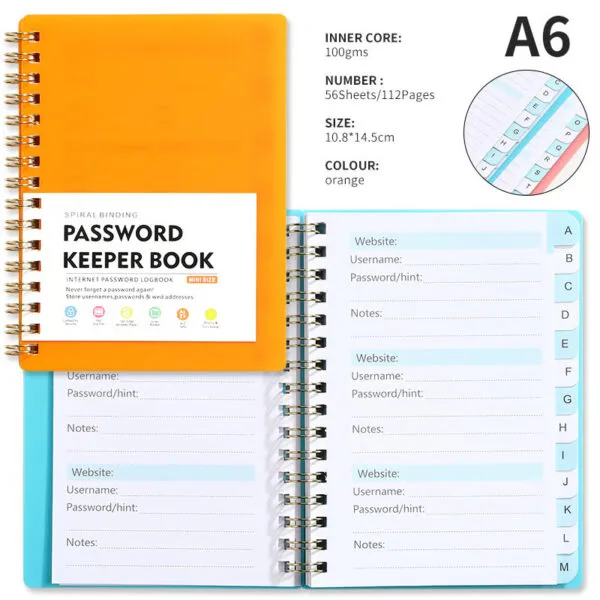 Effortless Page Flipping: The spiral binding makes it easy to quickly flip through the pages, giving you fast access to your login details without any hassle.