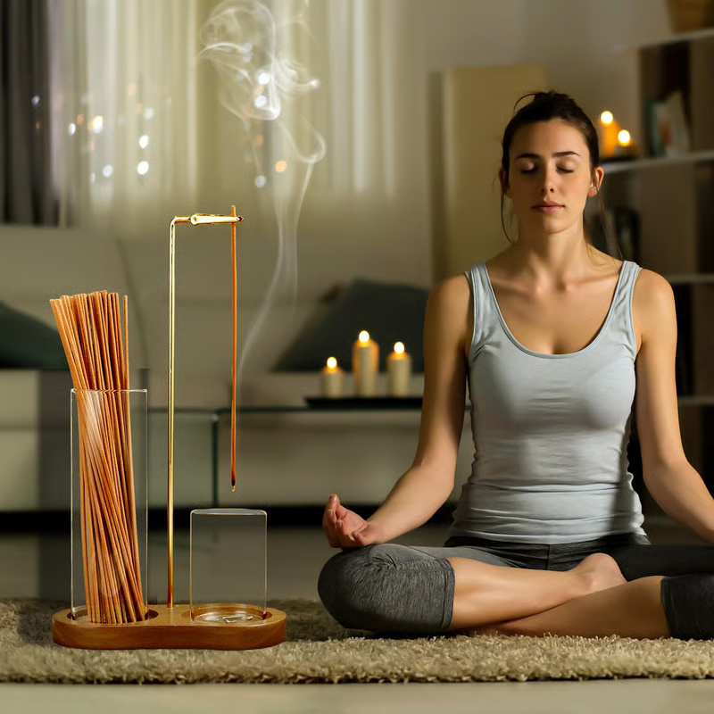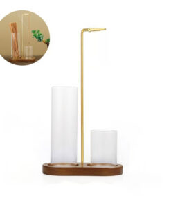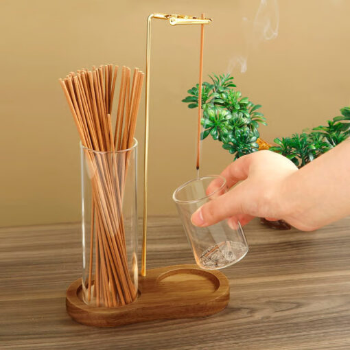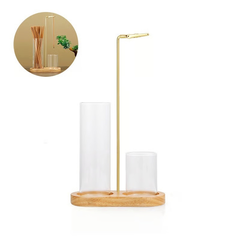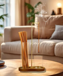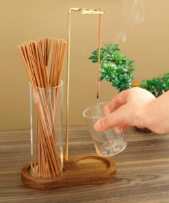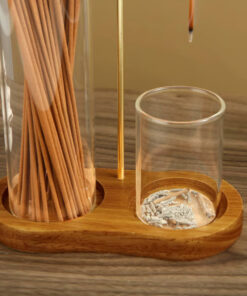Featuring two thoughtfully designed glass cups, this incense holder ensures a neat, ash-free surface. The taller glass cup holds your incense stick upright, while the shorter one catches falling ash, keeping your desk, altar, or meditation space spotless.