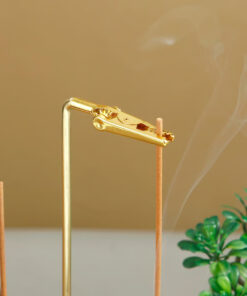 A discreet crocodile clip on a slim metal rod gently grips the incense stick in place. The modern metal arm enhances the overall design while offering stability, ensuring your incense burns evenly without tilting or mess.