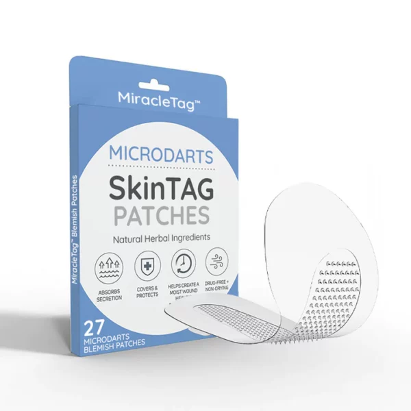 MiracleTag™ MicroDarts SkinTAG Blemish Patches painlessly and effectively remove skin tags while promoting healthy skin. These patches are carefully formulated with 100% natural ingredients, making them safe and suitable for all skin types, including dry, oily, normal, and combination skin. By harnessing the power of organic ingredients, these patches offer a gentle and non-invasive solution for eliminating skin tags.