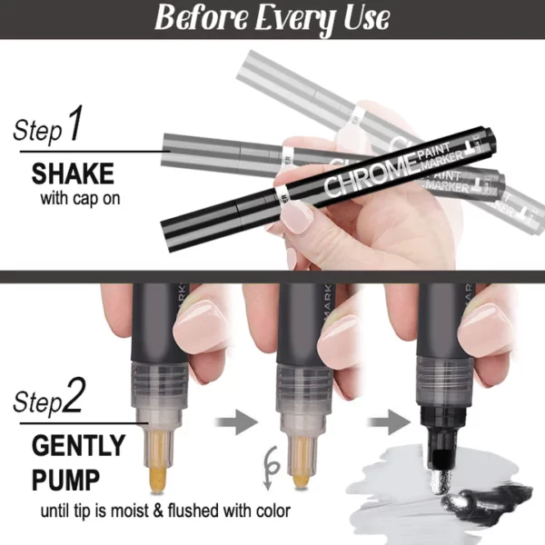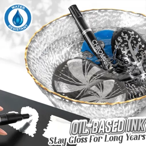 - Chrome Effect With Strong CoveringThe closest paint to match chrome, different from general silver marker, chrome paint pen could create a high gloss and reflective display effect. Can be applied on any surface like glass, stone, plastic, or even metal!