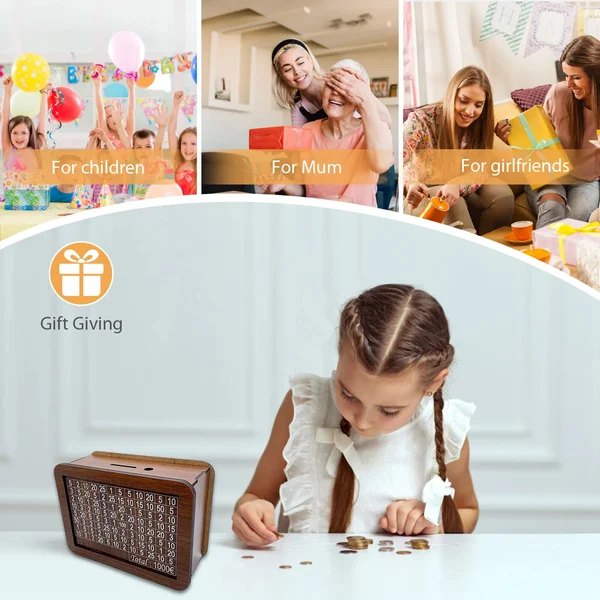 Unique Retro Money Box🎉: Made of wood, this piggy bank features a unique counting design, setting it apart from other money boxes on the market. With its retro aesthetics, it offers a distinct and nostalgic saving experience