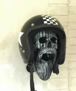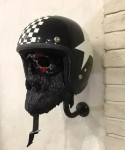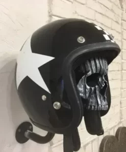 It easily mounts to any wall (make sure to mount into a stud for strength) with the included mounting hardware and can hold any motorcycle helmet.The skull is made of the optimum size therefore will be suitable for any helmet.