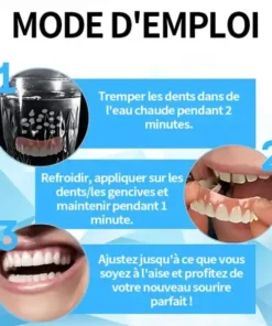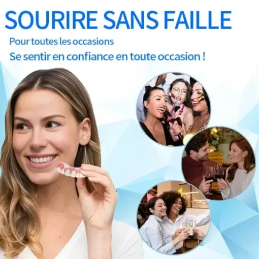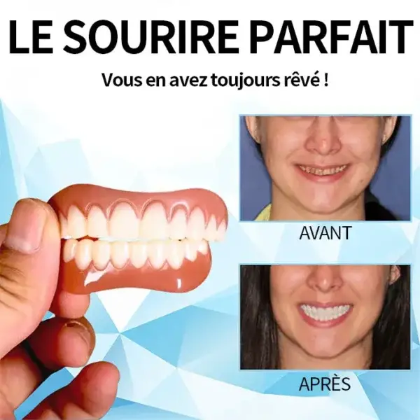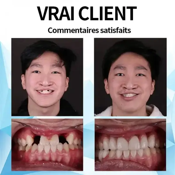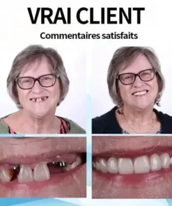 🌟 Ajustement facile, confort sans couture : profitez de prothèses dentaires qui s’adaptent parfaitement à votre bouche dès le moment où vous les mettez. Notre conception de pointe assure un ajustement serré et sécurisé, offrant un confort exceptionnel qui ressemble à une partie naturelle de votre bouche. Vous pouvez vaquer à vos occupations en toute confiance, sans gêne ni déplacement, vous permettant de manger, de parler et de sourire sans tracas ni souci.