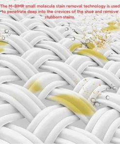 After years of research and development by a team of professionals, a scientific stain removal formula is used to achieve a very efficient cleaning method. The M-BIMR small molecule stain removal technology is used to penetrate deep into the crevices of the shoe and remove stubborn stains.