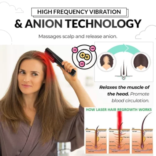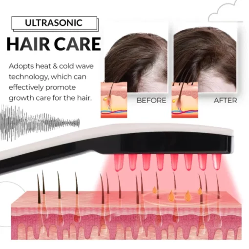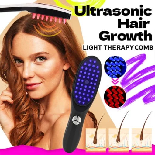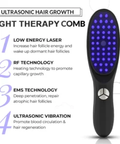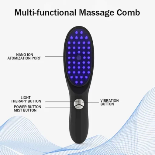 The comb combines light therapy, ultrasonic vibration, and Nano Ion Atomization to stimulate hair growth, improve circulation, and nourish the scalp.