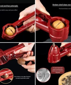 - Stronger Material: Nut Clamp Opening Tool – Enamel Die-Cast Aluminum Is More Sturdy, Durable, Wear-Resistant, And Will Not Break Even When Used With Force. Nuts, Pecans, Hazelnuts, Almonds, Walnuts, Brazil Nuts, Chestnuts, Sunflowers, Etc. It Can Be Easily Opened. Complimentary Fruit And Vegetable Scraper.