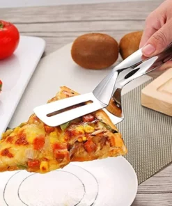 Multifunctional stainless steel food flipping shovel clamp, suitable for steak bread burger barbecue meat pizza pie bread fish.
