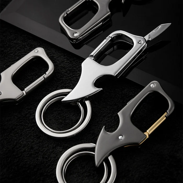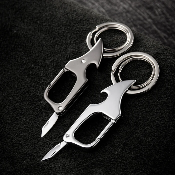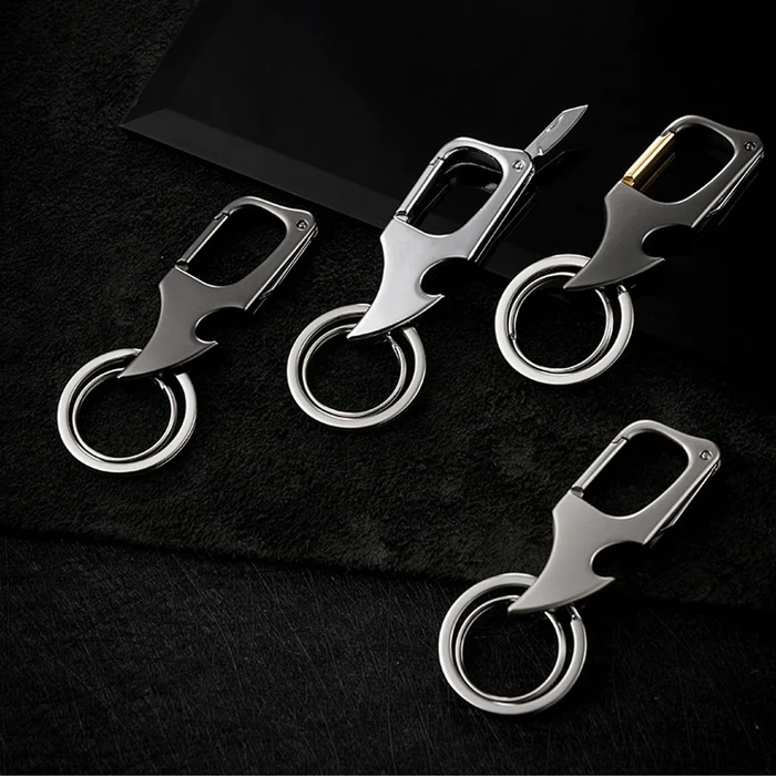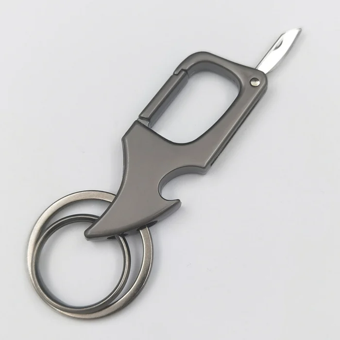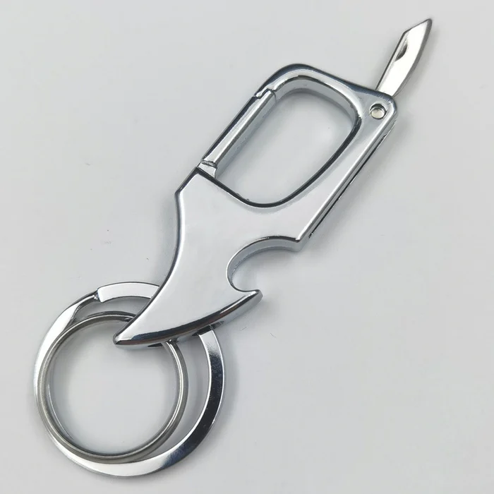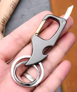 Never be caught without a bottle opener or small knife again with this multifunctional pendant keychain. Made with high-quality metal, this double ring keychain features a convenient bottle opener, a hidden small knife, and a stylish pendant design. Whether you’re at a party, camping, or just need a quick tool on the go, this keychain is the perfect solution for opening your favorite beverages and small tasks.