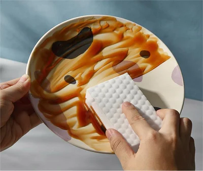 • AMAZING FEATURES – High density sponge, good toughness, wear-resisting, durable, strong absorption, elasticity and removal ability. Do not injure the hands, easy to remove stubborn stain and dirt. Wipe the pot descaling, not hurt utensils.