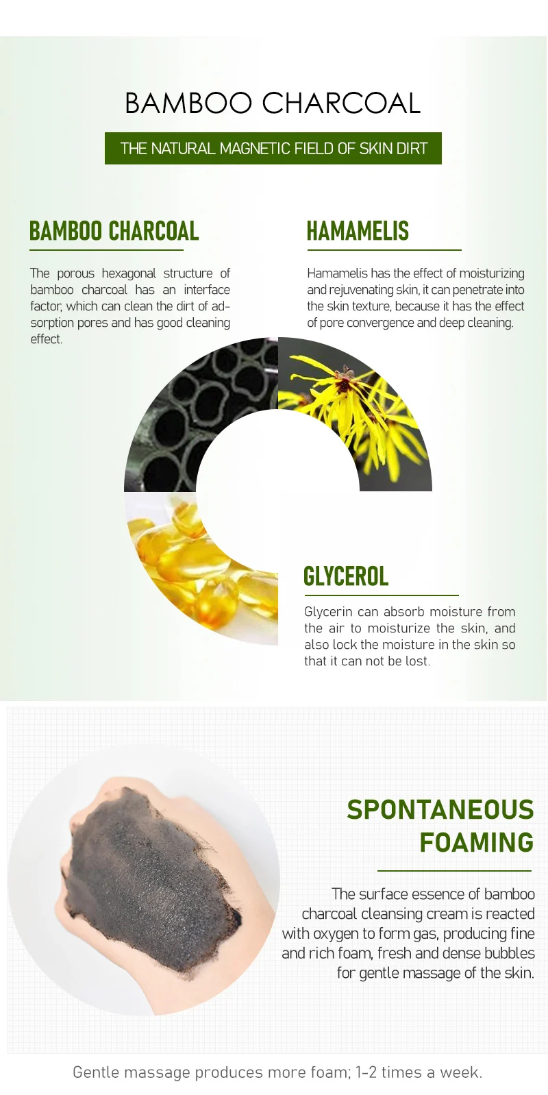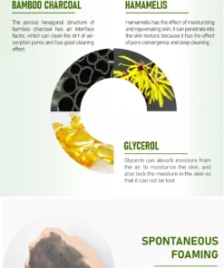 Natural Charcoal Bubble Facial Cleanser contains bamboo extract, which can effectively clean the skin pores, deeply clean up skin dirt, adjust the skin’s water and oil balance, replenish skin moisture, and nourish the skin.