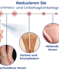 Unser innovatives Venen-Komfort-Spray wurde sorgfältig entwickelt, um das Wohlbefinden Ihres Kreislaufs zu verbessern. Es stärkt die Festigkeit und Elastizität Ihrer Venen und Arterien und sorgt für ihre dauerhafte Vitalität.