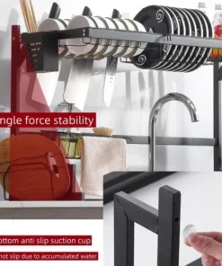 Sturdy and stable – The kitchen countertop dish rack is made of premium metal steel with a baked-on finish. The bottom of the shelf is equipped with suction cups that ensure absorption and prevent the shelf from wobbling in any direction.