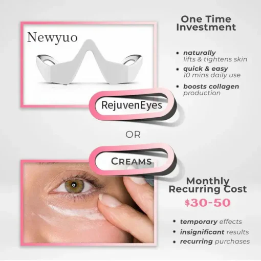 RejuvenEyes by Newyuo™ is your solution for vibrant, youthful eyes. This advanced device uses 630nm red light therapy and microcurrent to diminish dark circles and puffiness effectively.