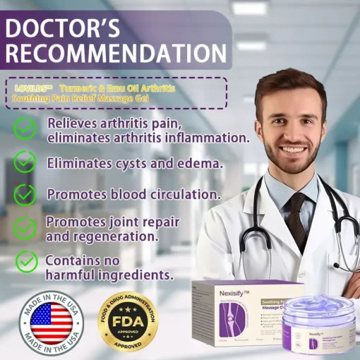 As an orthopedic surgeon. I highly recommend Nexisifyโขย Turmeric & Emu Oil Arthritis Soothing Pain Relief Massage Gelย for individuals dealing with joint pain. osteoarthritis. rheumatoid arthritis. and other inflammatory conditions. This gel combines the potent anti-inflammatory properties of turmeric and emu oil. working together to reduce pain. ease inflammation. and support joint health. Beyond pain relief. it also promotes tissue regeneration and aids in long-term joint recovery.ย Its unique formula helps repair damaged cartilage and supports overall mobility. offering lasting relief and improved joint function.