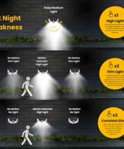 • Mode 3 – Night Light Mode (Constant Dim): The light maintains a constant, dim brightness throughout the night, regardless of motion detection.