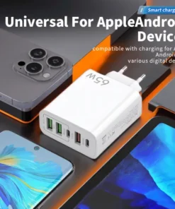 Rapid Charging: Equipped with PD (Power Delivery) technology, our charger delivers an impressive 65W output, enabling fast and efficient charging for smartphones, tablets, laptops, and other USB-powered devices.