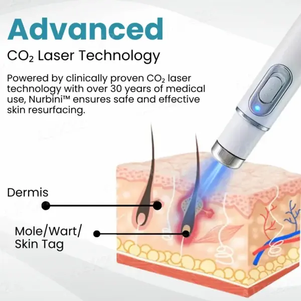 Nurbini™ utilizes state-of-the-art CO₂ laser technology, a gold-standard in dermatology with over 30 years of clinical history. As one of the first FDA-approved skin resurfacing treatments, it is designed to provide safe, precise, and effective removal of moles, warts, dark spots, and other skin imperfections.