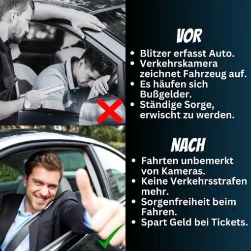 Tarnung vor Geschwindigkeitskameras: Neutralisieren Sie die Signale von Geschwindigkeitskameras und machen Sie Ihr Fahrzeug nahezu unsichtbar, befreien Sie sich von der Sorge um automatisierte Geschwindigkeitsstrafen.