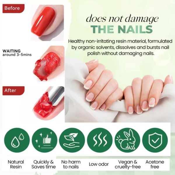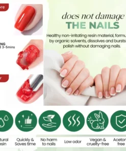 “It effortlessly dissolves even the most stubborn polish, allowing me to unleash my creative side without worrying about removal struggles. The result? Instagram-worthy nails that make heads turn! And the best part? My nails feel healthy, nourished, and ready for their next transformation.” – Candy., 29 –