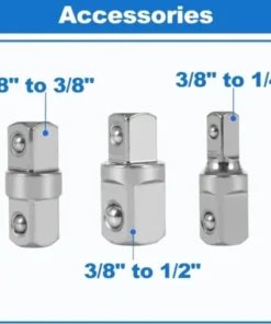 - Multiple Square Drive Adapters: Includes 1/4″, 3/8″, and 1/2″ adapters, allowing compatibility with a wide range of sockets.