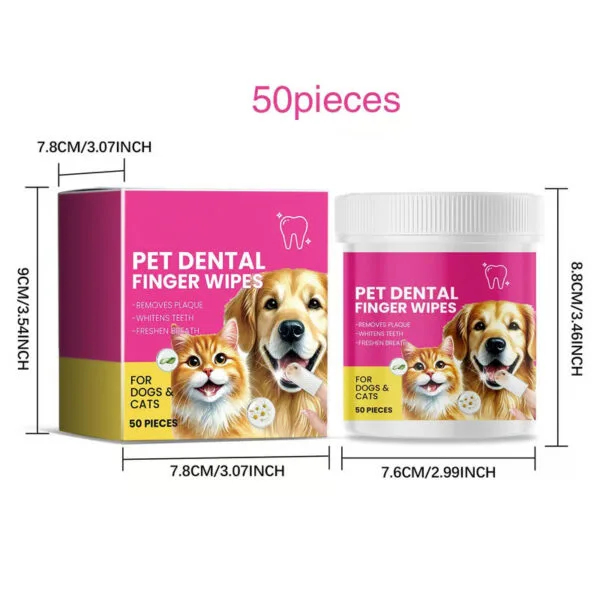Say goodbye to the mess and hassle of traditional toothbrushes. Our pet teeth cleaning wipes are designed for convenience — simply wipe your dog or cat’s teeth with these gentle wipes, and you’ll instantly see tartar and plaque being removed. These wipes promote healthier gums, fresher breath, and overall improved oral health for your furry friend, without the need for a toothbrush or toothpaste.