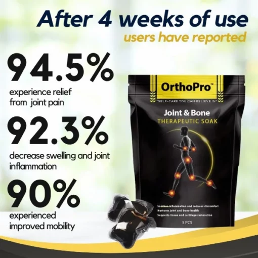 Unveil the secrets of a life enriched with mobility and free from discomfort with every soothing soak. OrthoPro™ is the culmination of years of research and expertise, meticulously formulated to address the intricate needs of your joints and bones. Let the science-backed blend of ingredients penetrate deep, facilitating the restoration of cartilage and tissue, and propelling you toward enhanced mobility and comfort.
