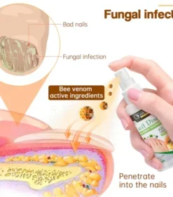 Ourlyard™ Bee Venom Nail Disease Treatment Spray is a scientifically proven, fast-acting solution for bacterial foot disorders. It has a 99% efficacy approval rating and is formulated to target a variety of foot problems for optimal foot health. It kills bacteria, yeast and mold on contact, provides immediate relief and eliminates 99.99% of bacteria in less than 1 minute. The spray helps maintain the skin’s pH balance and lasts for 7 days. Spray contains all natural ingredients that are safe to use and promote healing of dry, brittle nails and damaged skin. Effective treatment for fungal infections, grey nails, nail infections, athlete’s foot and bad odor.