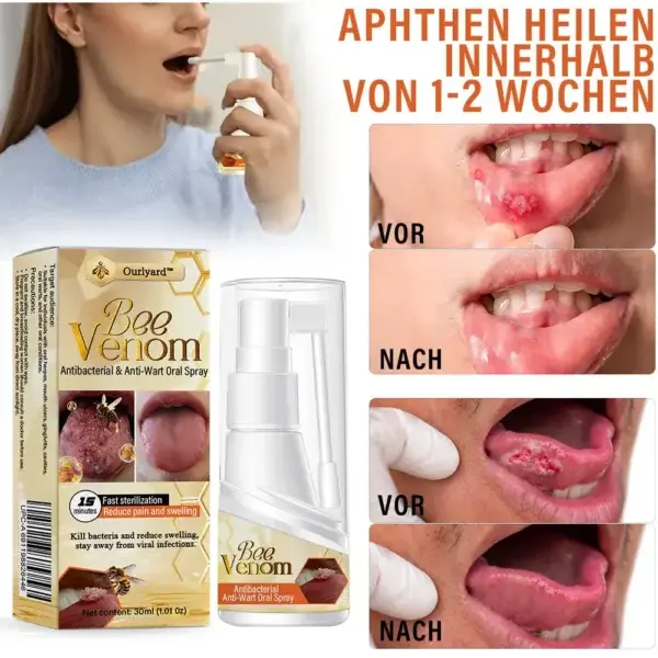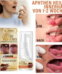 Monatelang verursachten die unansehnlichen Wucherungen in meinem Mund Schmerzen beim Essen und machten mich in sozialen Situationen unsicher. Frei verkäufliche Mittel reizten nur die betroffene Stelle, und ich fürchtete invasive Behandlungen. Aber dieses innovative Spray, das mit den starken antibakteriellen Eigenschaften des natürlichen Bienengifts angereichert ist, wurde mein Wendepunkt.