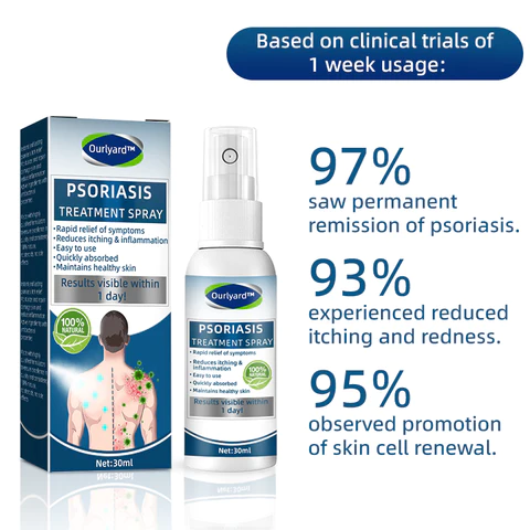 Ourlyard™ Psoriasis Treatment Spray cleanses the skin from the inside out, alleviating itching and inflammation. It is free from irritating chemicals and does not exacerbate already damaged skin. Ourlyard™ helps minimize the growth of skin cells triggered by psoriasis, providing relief from inflammation, itching, and scaling associated with this condition.