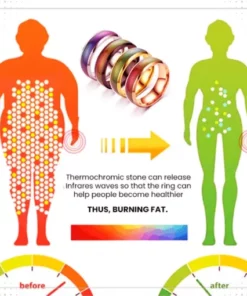 Thermochromic stone can release infrared waves so that the ring can help people become healthier. Infrared gently penetrates deep within the soft tissues of the skin, layers of fat, and muscles. Promoting micro-circulation, improving your blood circulation, and improving cellular metabolism.