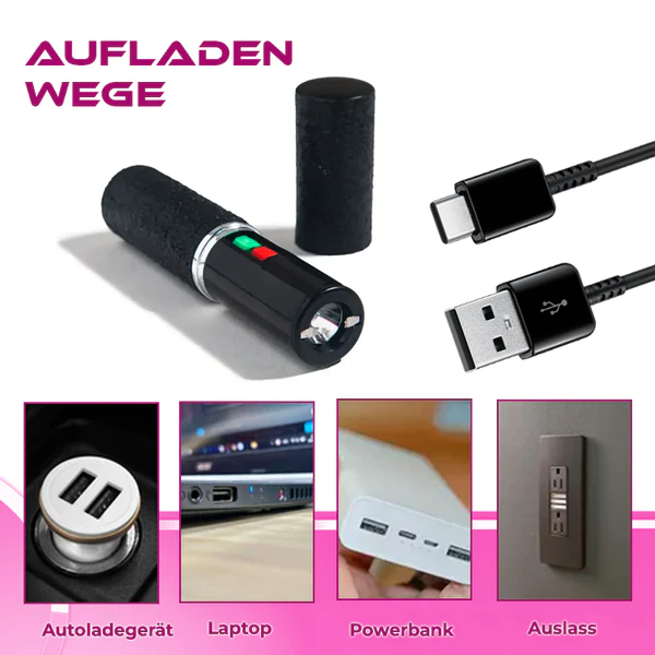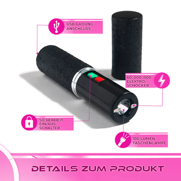 Ich trage seit mehreren Jahren eines dieser Geräte, besonders beim Gassigehen mit den Hunden. Ich habe dieses für meine Enkelin gekauft, damit sie jederzeit geschützt ist. Ich liebe es, dass es als Lippenstift getarnt ist, niemand würde es erraten! Was mir am besten gefällt, ist, dass die Ladung nicht vom Angreifer auf einen selbst übergeht. Ich trage jetzt seit über einem Monat eines und fühle mich SO sicher… danke für ein großartiges Produkt.