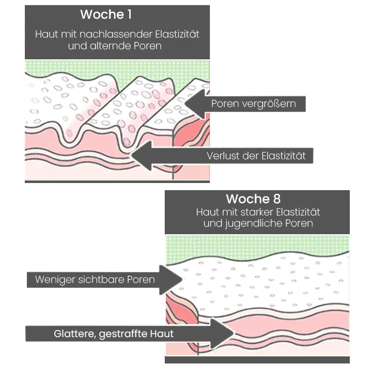 - Anti-Aging und Hautstraffung – Reduziert das Auftreten und die Ausprägung von Alterserscheinungen (Falten, feine Linien und Krähenfüße) und schlaffer Haut.)