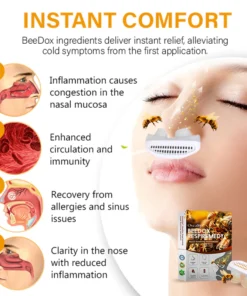 Bee venom has been gaining attention in recent years for its potential benefits in alleviating nasal congestion.The venom contains a compound called melittin, which has been shown to have anti-inflammatory and anti-allergic properties, making it effective in reducing swelling and congestion. Additionally, bee venom in BeeDox has been found to increase the production of nitric oxide, which can help to improve respiratory function and reduce the severity of respiratory issues.The BeeDox has been proven that bee venom has been shown to have antimicrobial properties as well, which can help to reduce inflammation and combat infections in the nasal passages and sinuses.